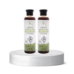 Amla strengthens hair follicles and promotes hair growth, while Reetha gently cleanses the scalp, removing excess oil and dirt. Together, they nourish and condition the hair for a healthy shine. -